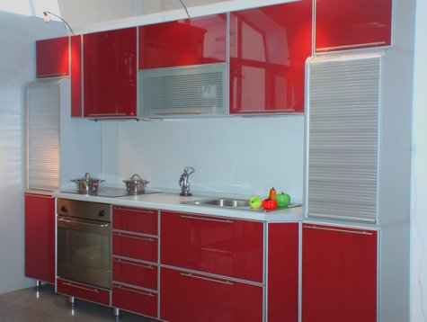 Использование алюминиевых фасадов в кухнях под заказ предоставляет широкие возможности для творчества и проектирования мебели. Благородная матовая поверхность алюминия придает кухне характер эксклюзивности и элегантности. Влаго- и термоустойчивость алюминиевых фасадов делает привлекательным и эффективным их применение на кухне. Алюминий в сочетании с различными видами орнаментированного стекла позволяет достигнуть неповторимого эффекта, который может усиливаться с помощью подсветки.